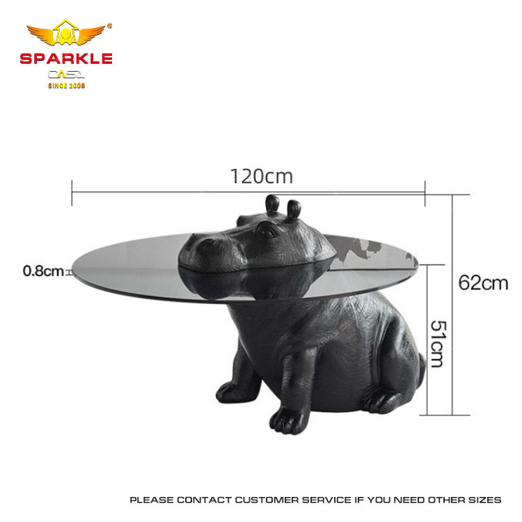 โต๊ะกาแฟทรงกลม SPARKLE Modern Hippo ทำจากสแตนเลสและกระจกนิรภัย ปรับแต่งสีได้ เหมาะสำหรับห้องนั่งเล่น