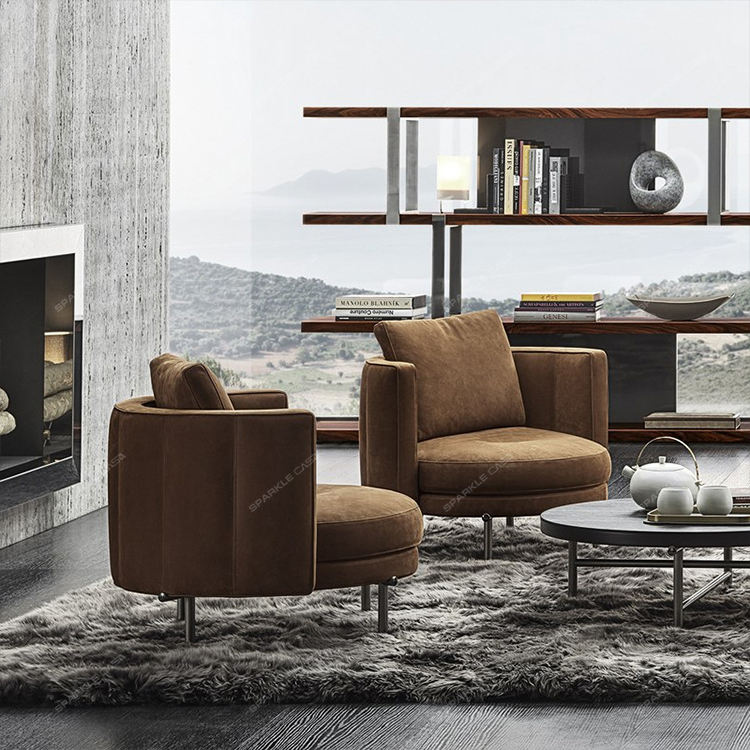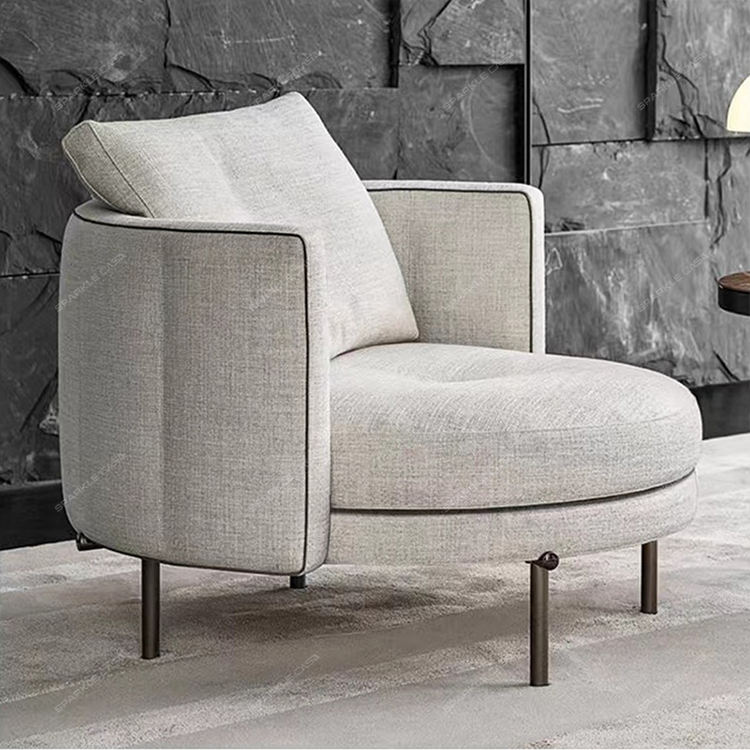 เก้าอี้โซฟาเดี่ยวสไตล์เรียบง่ายทันสมัย, ขนาดเล็กสไตล์อิตาลีดีไซน์มินิมอลลิสต์สำหรับห้องนั่งเล่นระเบียงโซฟาผ้าแบบสบายๆ