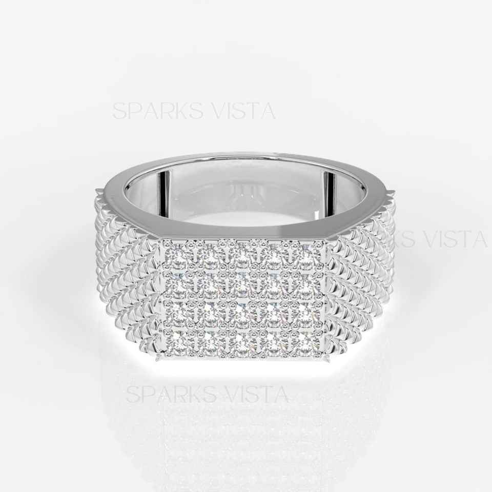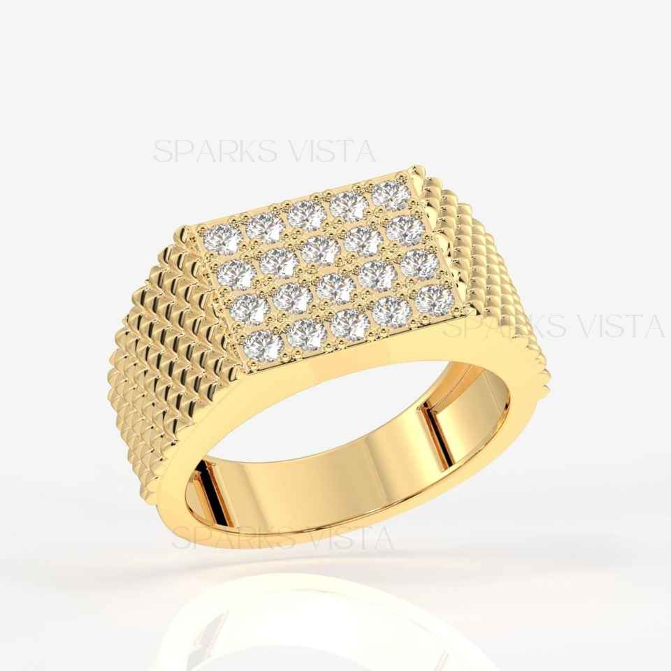 แหวนเพชรซิคอนสังเคราะห์ทรงคลาสสิกประดับเพชรแบบ Pave สำหรับผู้หญิง แบรนด์ SPARKS VISTA หรูหรา พร้อมใบรับรอง GIA ทอง 14K/18K ดีไซน์วงแหวนรูปกลุ่มดาว เหมาะสำหรับเป็นแหวนหมั้น