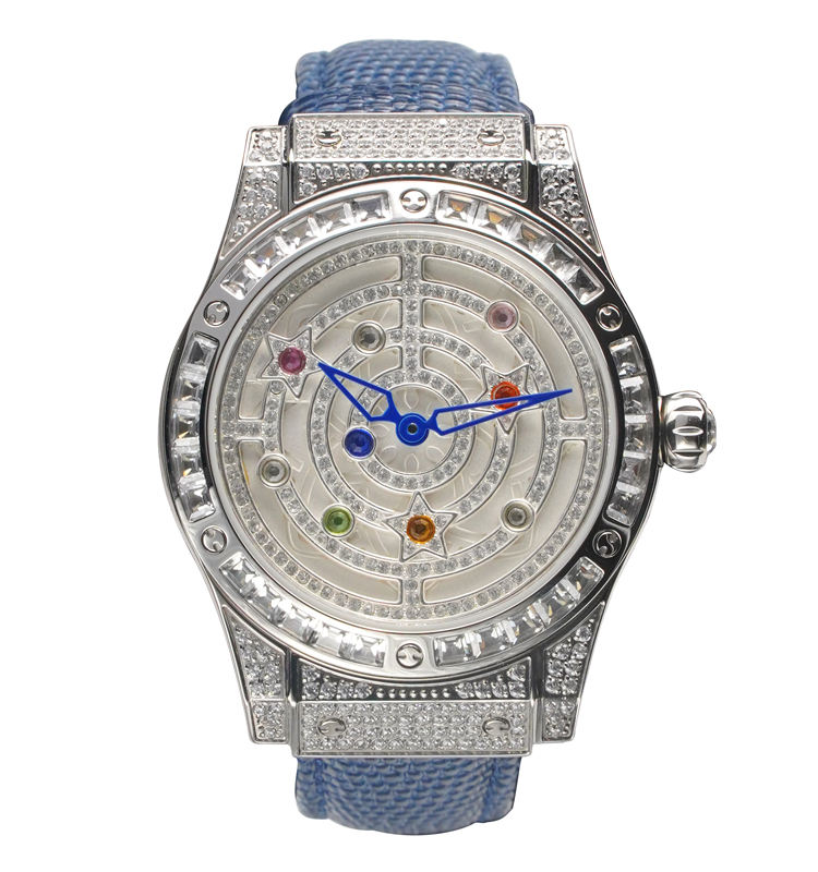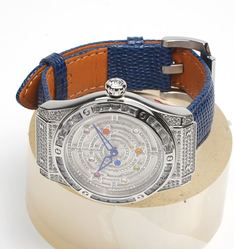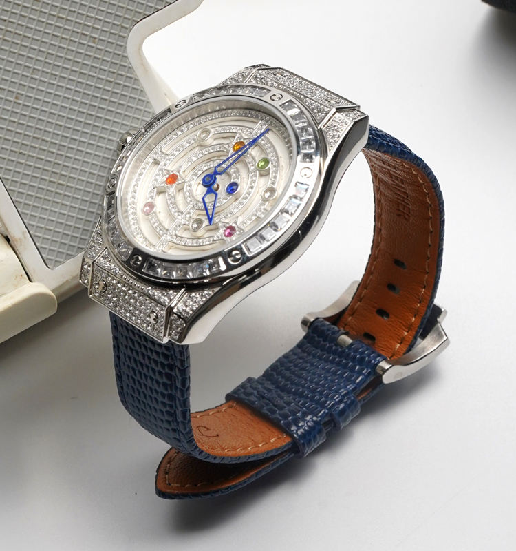 Sparktime นาฬิกาข้อมือควอตซ์สีเงินตัวเรือนสแตนเลสที่หุ้มด้วยเพชรหรูหราดูหรูหราสง่างาม