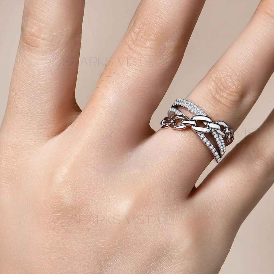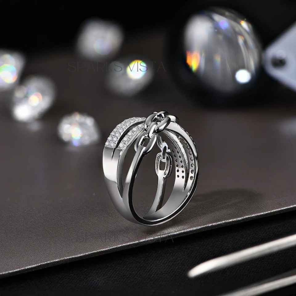 Sparkvista ห่วงเชื่อม925สายโซ่สีเงินสเตอร์ลิงประดับเพชรเม็ดเล็กๆสไตล์คลาสสิก