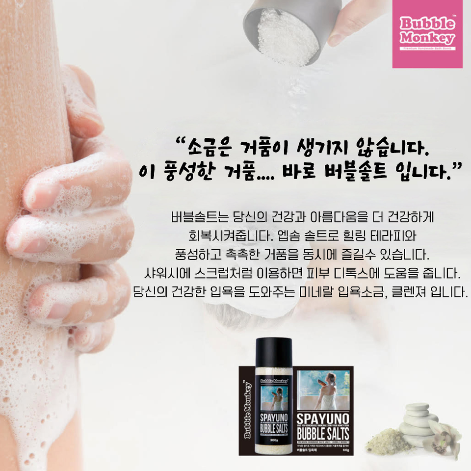 สปาโน บับเบิ้ล มังกี้ บับเบิ้ลซอลท์ส ผลิตภัณฑ์เพื่อสุขภาพระดับพรีเมียม ผสมเกลือทะเลเดดซีและเกลือเอปซอม ช่วยผลัดเซลล์ผิว กลิ่นลาเวนเดอร์ ผลิตในเกาหลี