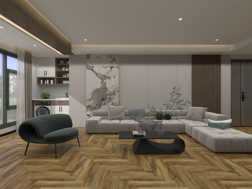 พื้น SPC กันน้ำ ระบบคลิปล็อค แกนแข็ง ทนไฟ ทนการสึกหรอ เหมาะสำหรับห้องครัว ห้องน้ำ อพาร์ทเมนต์ สำนักงาน และพื้นที่ค้าปลีก