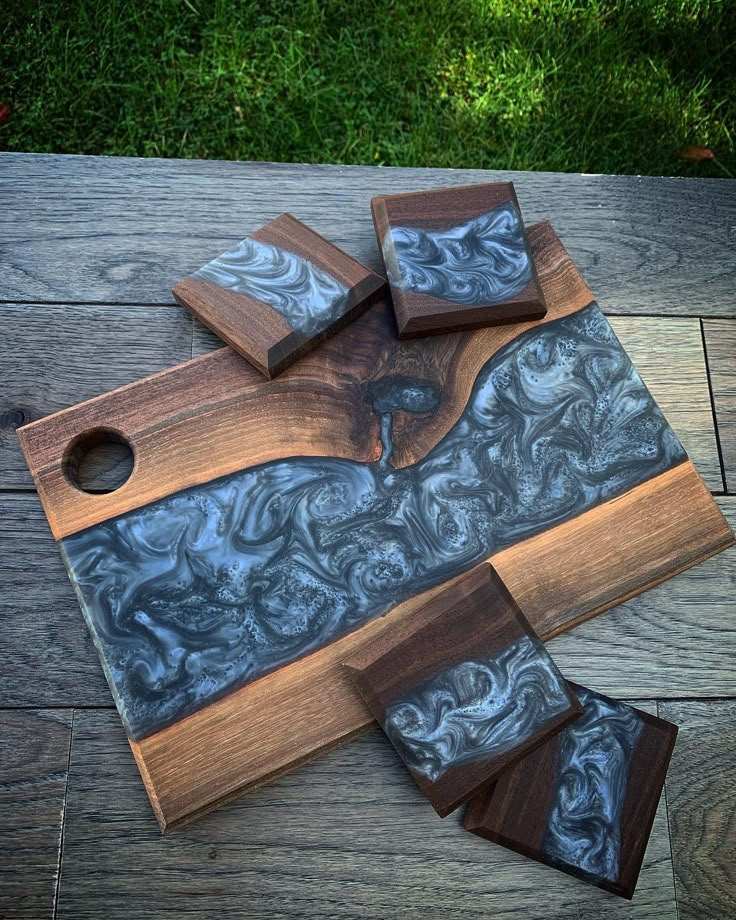 ชุดจานรองแก้วอีพ็อกซี่เรซินอีพ็อกซี่ทรงกลมตกแต่งด้วยงานฝีมือบ้าน