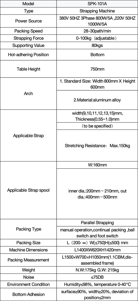 เครื่องรัดกล่องลูกฟูกอัตโนมัติ รุ่น SPK-101A มอเตอร์ PLC ใช้งานง่ายสำหรับการรัดด้านข้างตู้ไฟฟ้า