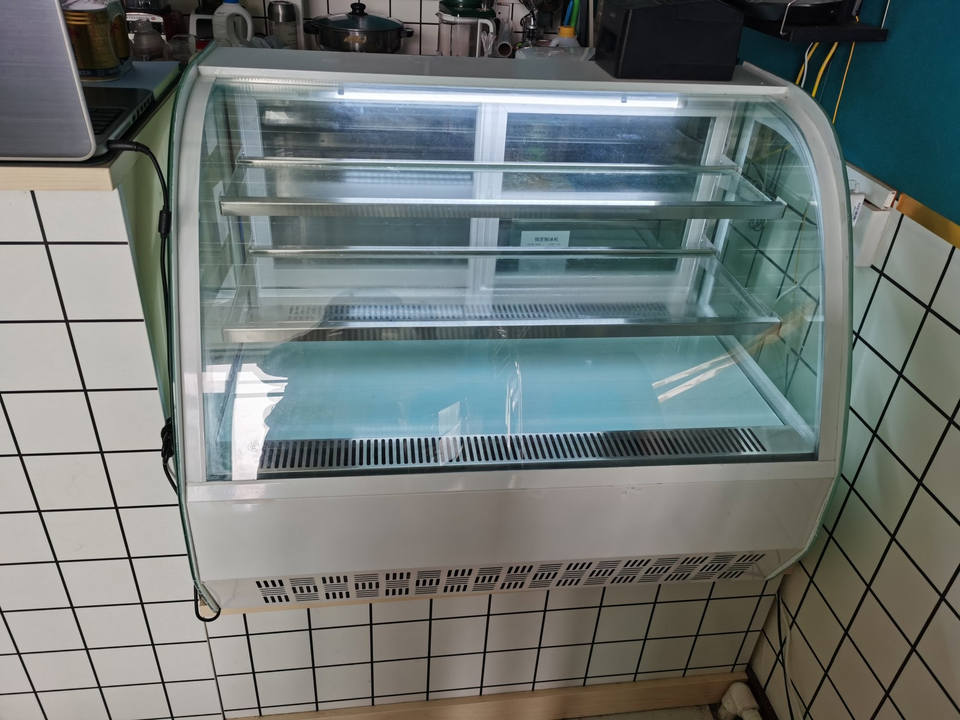 ชื่อผลิตภัณฑ์:แท่นโชว์ขนมอบทำจากแก้วโค้งสำหรับเค้กตู้เย็นสำหรับเบเกอรี่