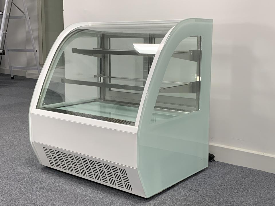 ตู้เย็นขนาดเล็กสำหรับโชว์เค้กขนมอบที่ทำจากแก้วทรงโค้งของ Sm2