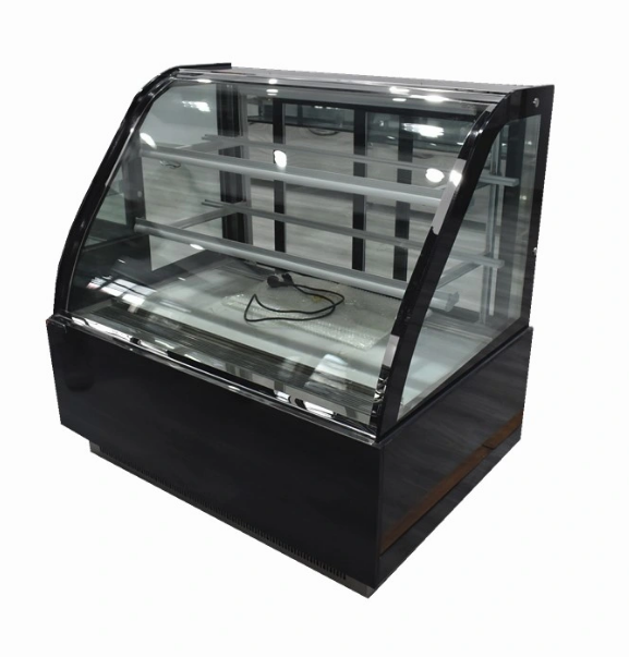 แท่นโชว์ขนมอบทำจากแก้วโค้งสำหรับเค้กตู้เย็นสำหรับเบเกอรี่