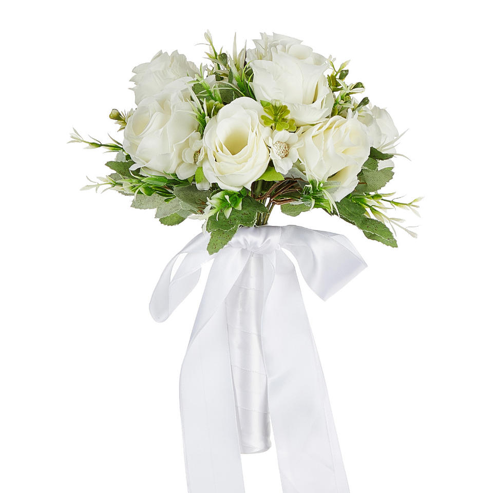ช่อดอกไม้เจ้าสาวสีขาวแบบกำหนดเองสำหรับฤดูใบไม้ผลิ ช่อดอกกุหลาบผ้าไหมประดิษฐ์สำหรับตกแต่งงานแต่งงาน