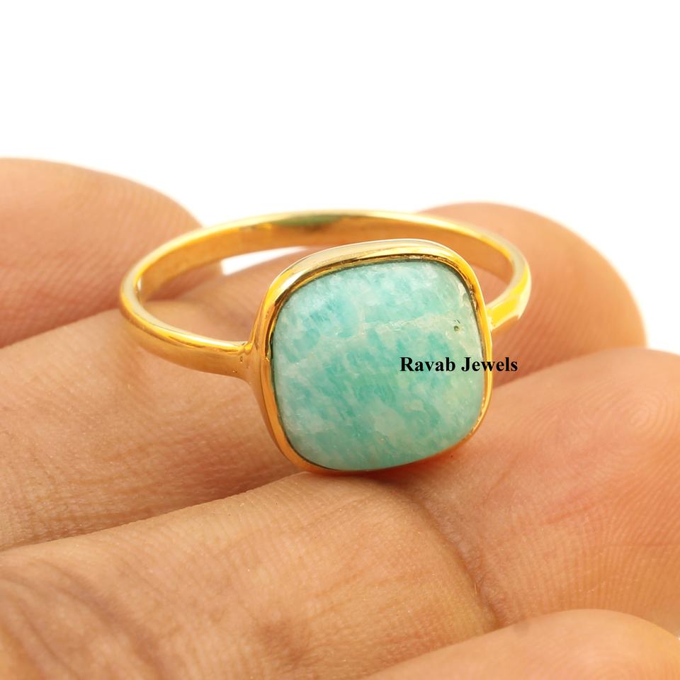 Sqcsgpr 925เงินสเตอร์ลิง10มม. แหวน Vermeil สไตล์โบฮีเมียนพลอยควอตซ์สมิธโซไนต์สำหรับการหมั้นในงานแต่งงาน