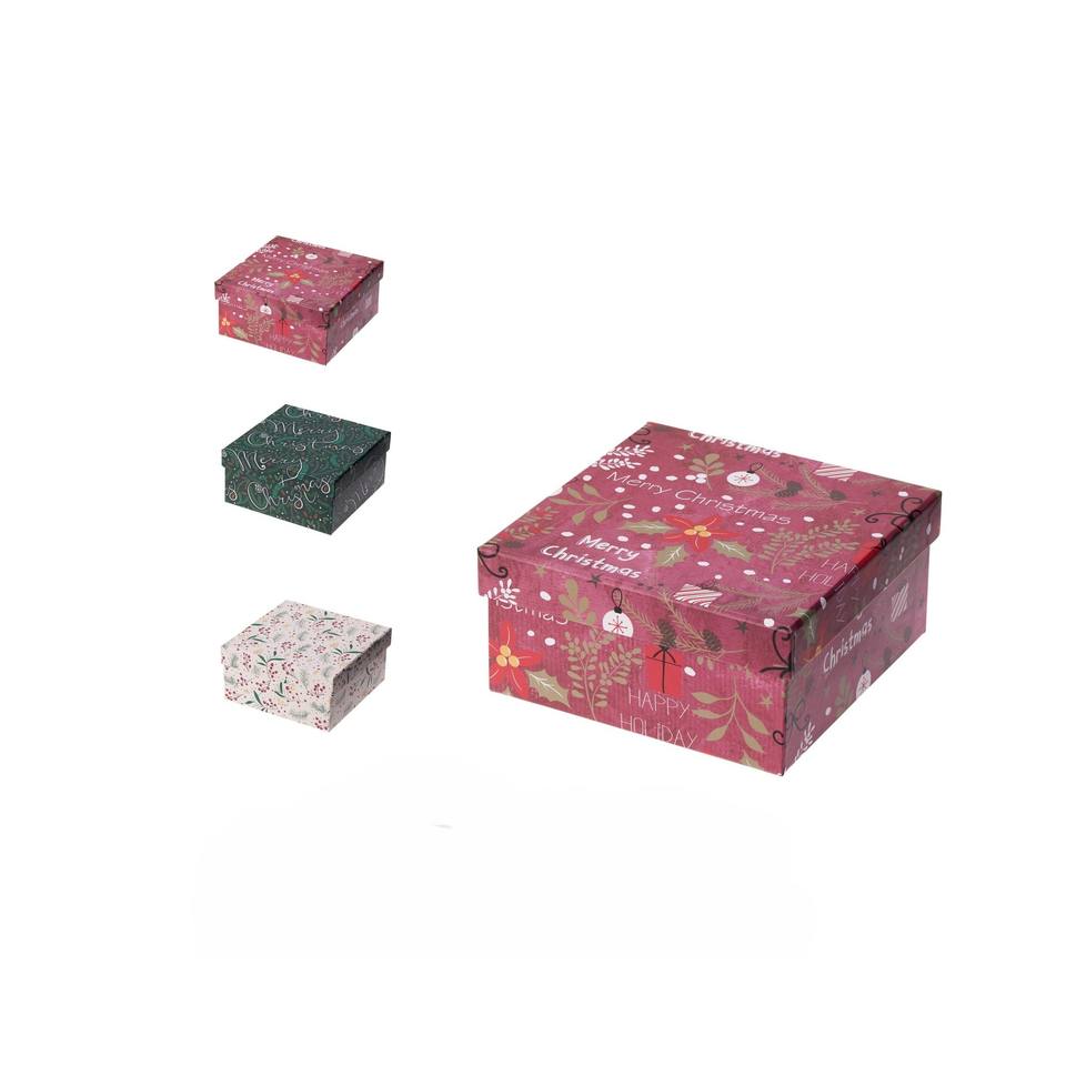 กล่องกระดาษสี่เหลี่ยม 14x14 ซม. พร้อมของตกแต่งคริสต์มาสลายมิสเซิลโท