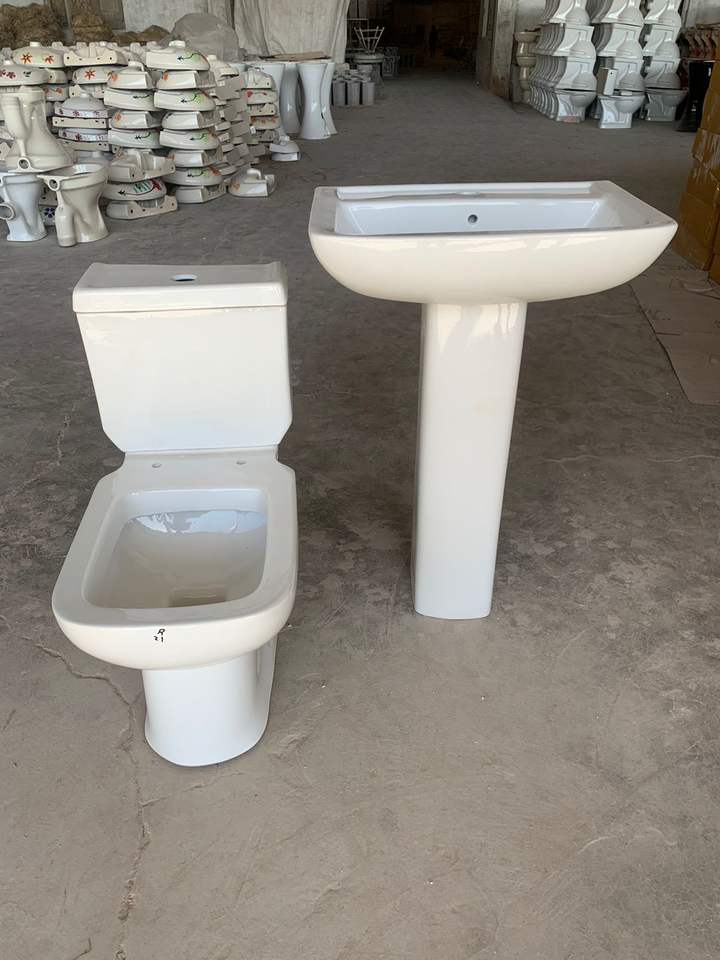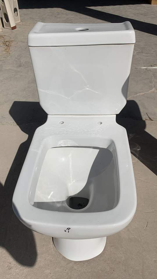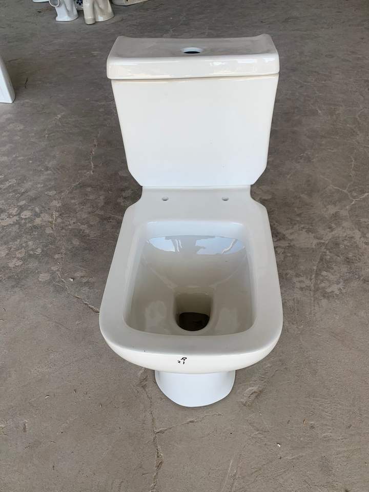ชุดสุขภัณฑ์เซรามิกสองชิ้นทรงสี่เหลี่ยม สีฟ้าอมเขียว ผลิตในอินเดีย