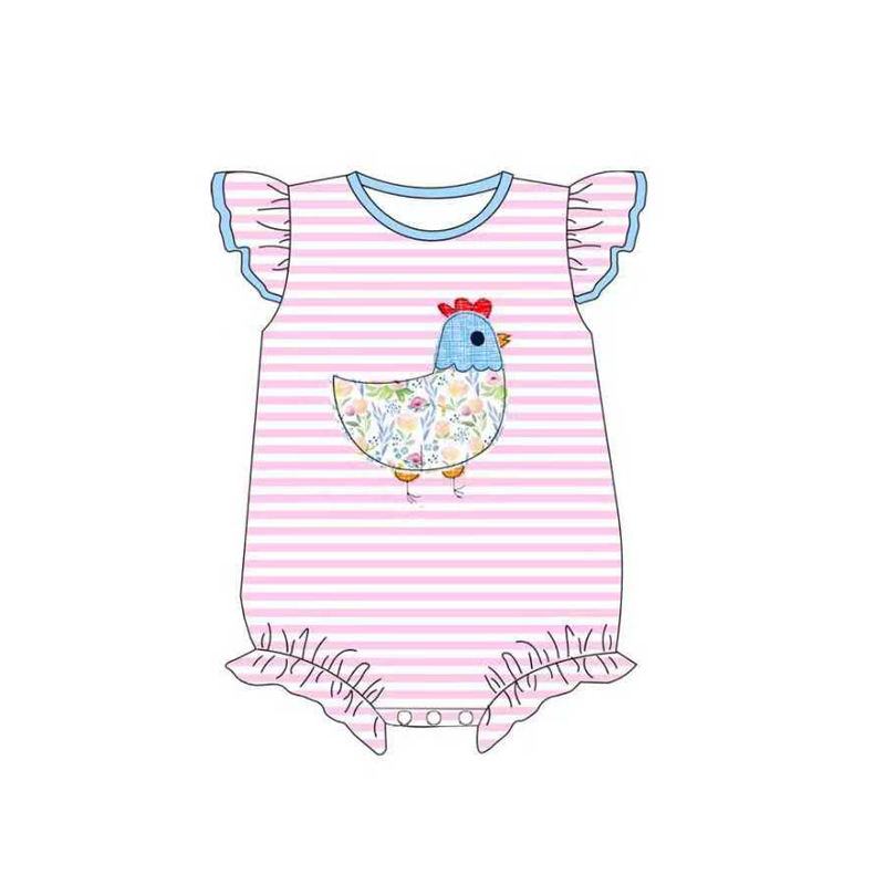 SR3422 Custom Infant baby pink stripe floral chick print kids girl wholesale romper flying sleeve jumpsuit