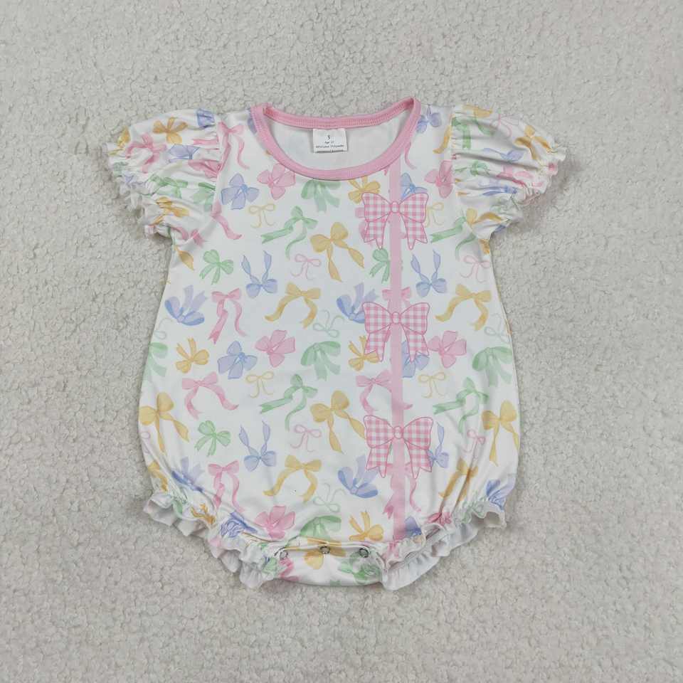 ชุดรอมเปอร์เด็กทารก SR3672 RTS ลายโบว์หลากสี ขายส่ง ชุดจั๊มสูทแขนสั้นเด็กผู้ชาย