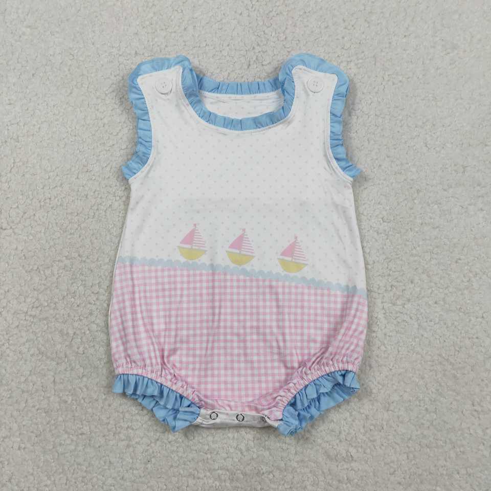 SR3755 RTS Infant baby pink plaid boat kids wholesale romper sleeveless jumpsuit girl bubble