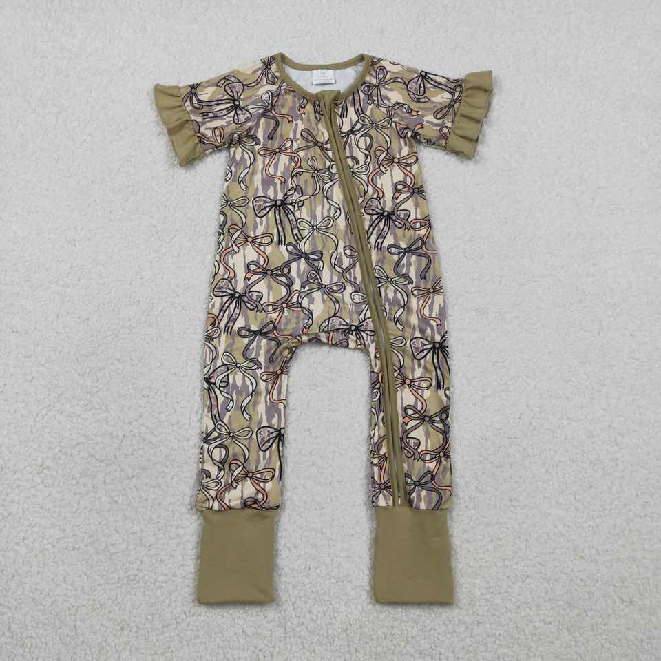ชุดรอมเปอร์เด็กทารกพิมพ์ลายโบว์ลายพราง SR3931 ขายส่งชุดรอมเปอร์เด็กอุ่นๆ