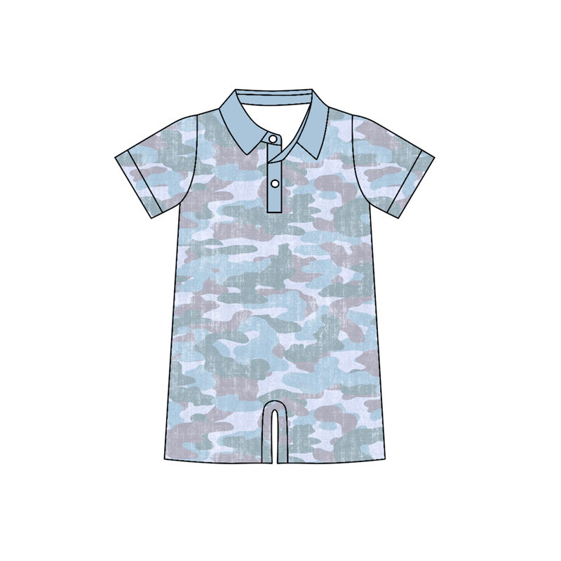 ชุดรอมเปอร์เด็กทารก SR4073 ลายพรางสีน้ำเงิน แขนสั้น ขายส่ง ชุดจั๊มสูทเด็กผู้หญิง