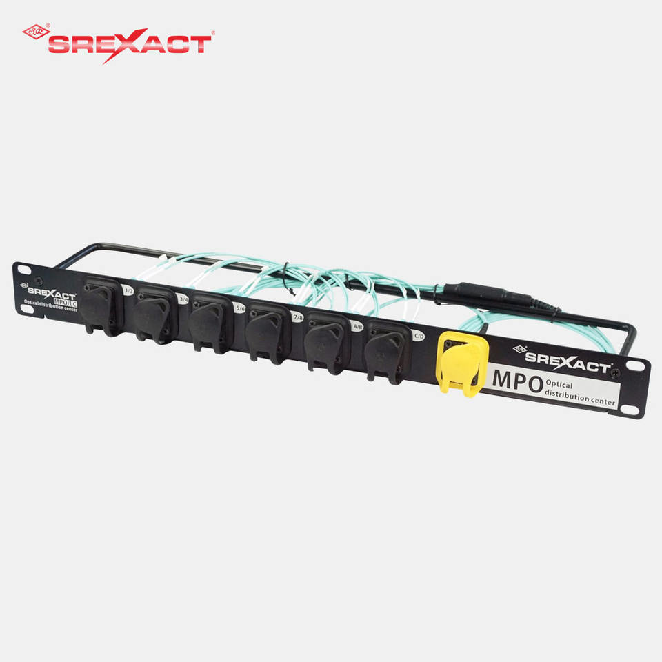 SREXACT SFPB-12M3-MPOM-6600 แผงแพทช์ไฟเบอร์ออปติก MPO หนา 2 มม. 12 พอร์ต OM3 สายแลน