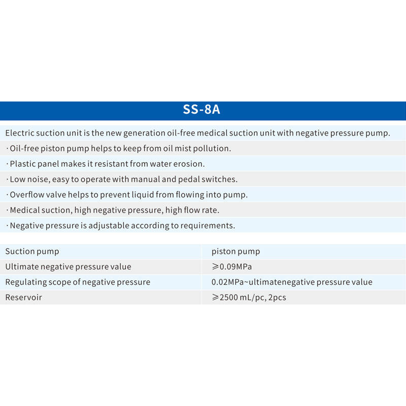 เครื่องดูดไฟฟ้า SS-8A แบบไร้น้ำมัน ปั๊มลูกสูบ อุปกรณ์สร้างแรงดันลบทางการแพทย์ สำหรับคลินิกและโรงพยาบาล
