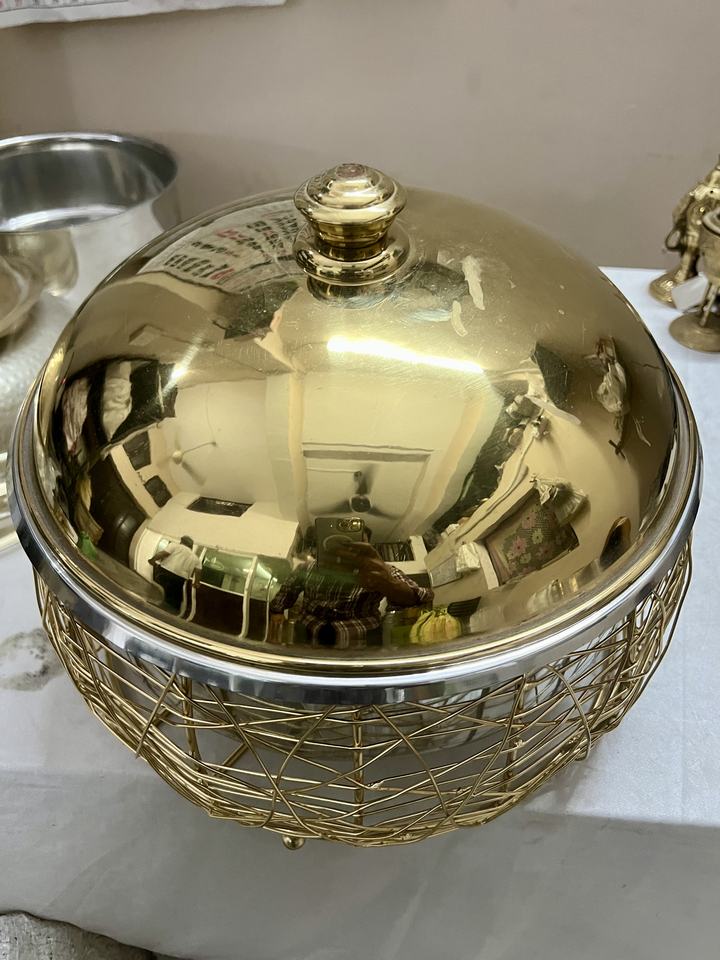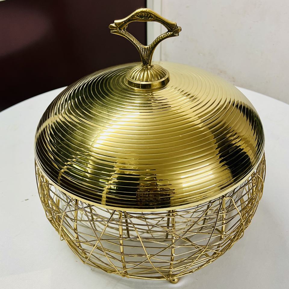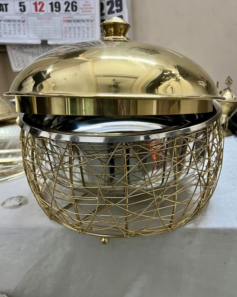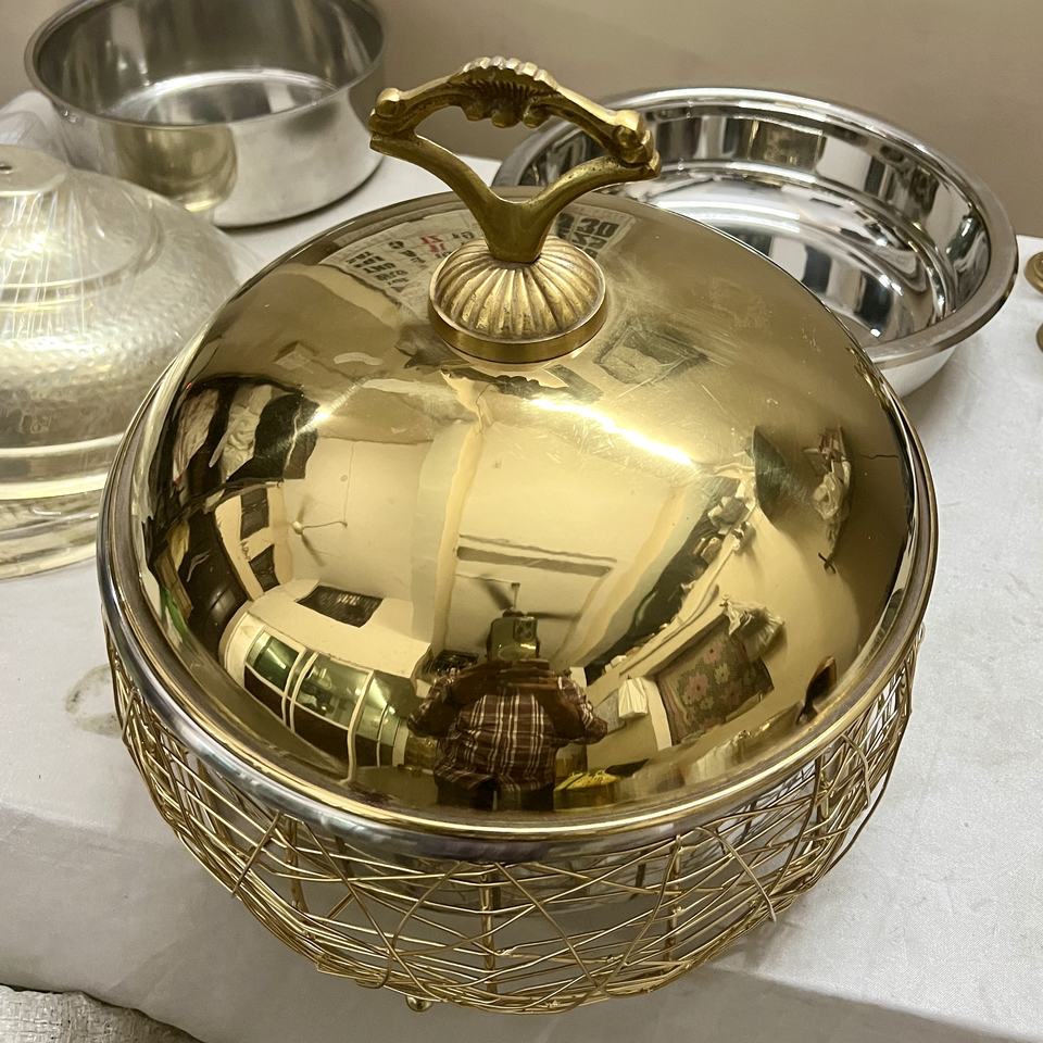 หม้อตุ๋นโลหะสีทอง SS พร้อมฝาปิดสแตนเลส ใช้กับเตาแม่เหล็กไฟฟ้าได้ คุณภาพสูง ขนาด 5000 มล. พร้อมขาตั้ง