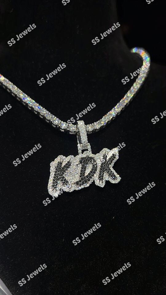 SS Jewels SS488 925 Silver Pendant Black Moissanite Diamonds Personalized Name Charm Necklace Iced Rhodium Plated Statement Hip