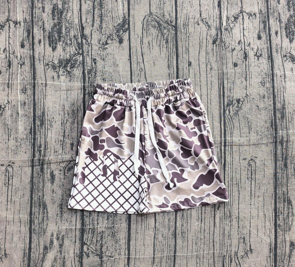 ชุดเสื้อผ้าสำหรับเด็กผู้ชายหัดเดินกางเกงขาสั้นลายสก็อตลายกวางสีเขียวลายพรางสำหรับ SS0648ออกแบบได้ตามต้องการ