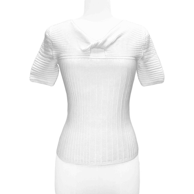 SS23 Women's Casual Puff Sleeve Thin Sweater Custom Viscose Polyester Comfortable Fit Twist Knot Front Design Spring