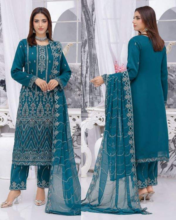 ชุดสูทผ้าชีฟองปักลายหรูหรา BIN HAMEED คอลเลคชั่น Sumaira พร้อมผ้าคลุมไหล่แฟนซีและกางเกงปักลาย