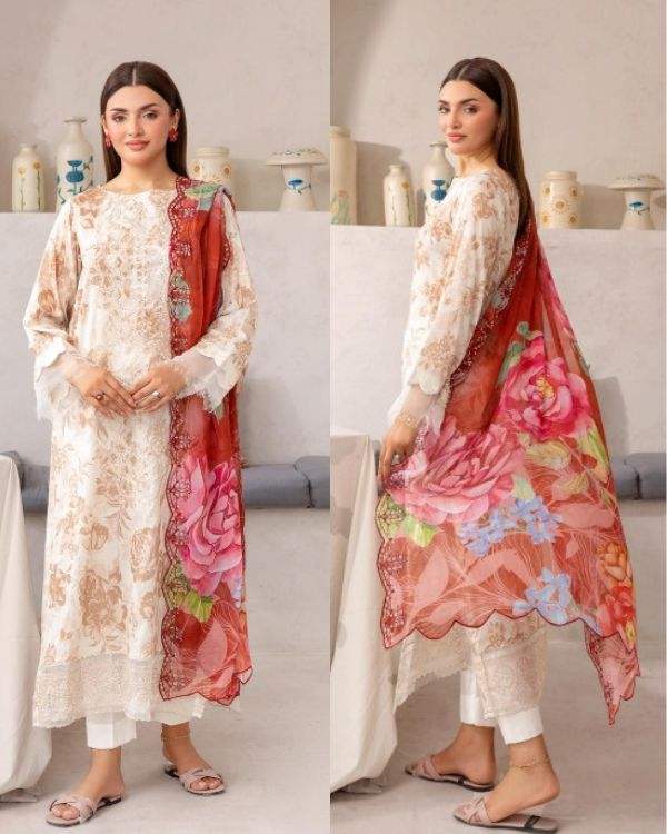 ชุด 3 ชิ้น คอลเลคชั่นซูมาอิร่า ลายกุลจี พิมพ์ดิจิทัล ปักลายบนผ้าลอน พร้อมผ้าคลุมไหล่ผ้าชีฟองลายฉลุ