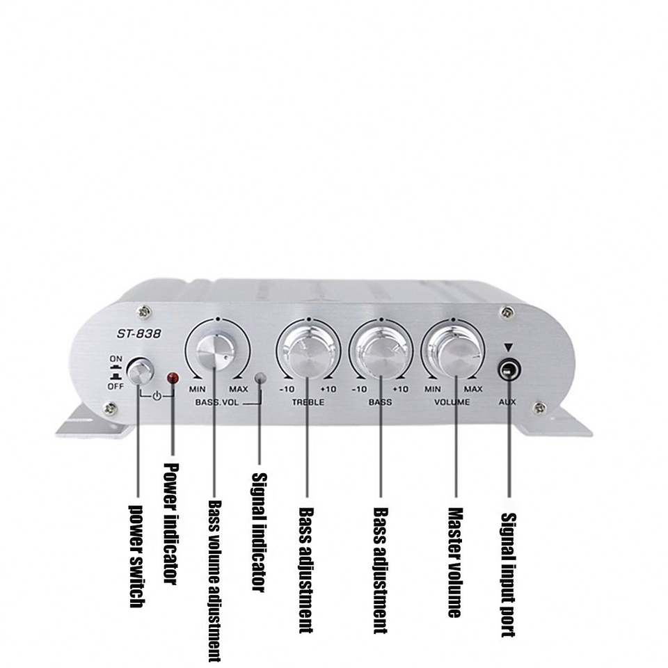 ST-838 มินิไฮไฟ 2.1 ช่องเครื่องขยายเสียงซับวูฟเฟอร์ Amp โฮมสก์ท็อป/รถยนต์/Marine สเตอริโอ Amp สําหรับลําโพง 20WX2 + 40W