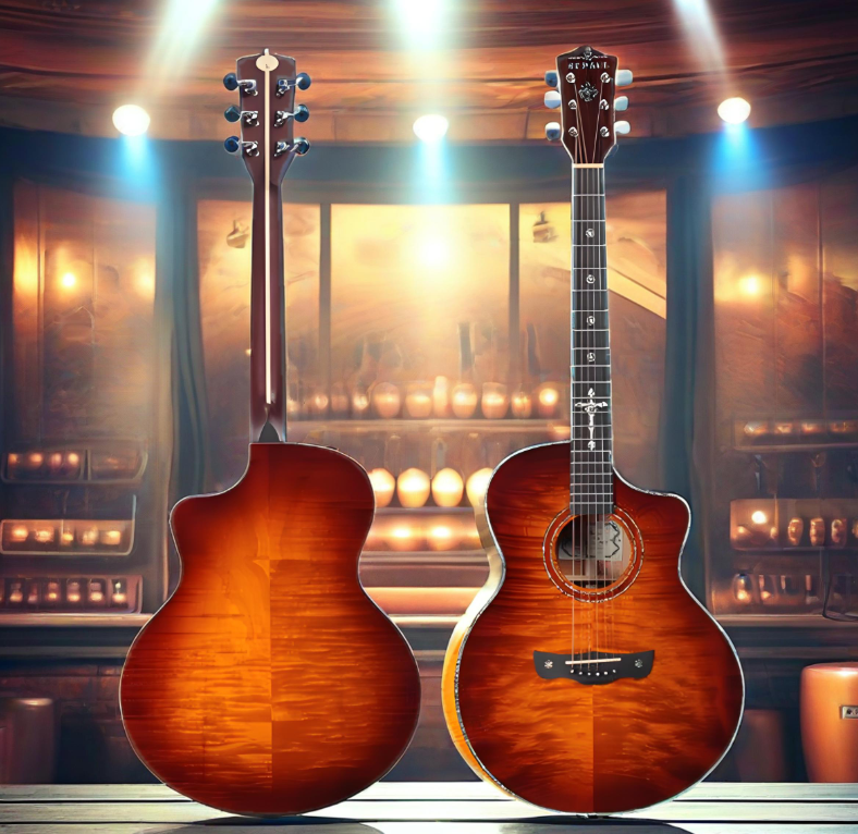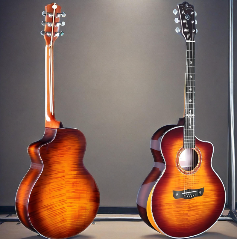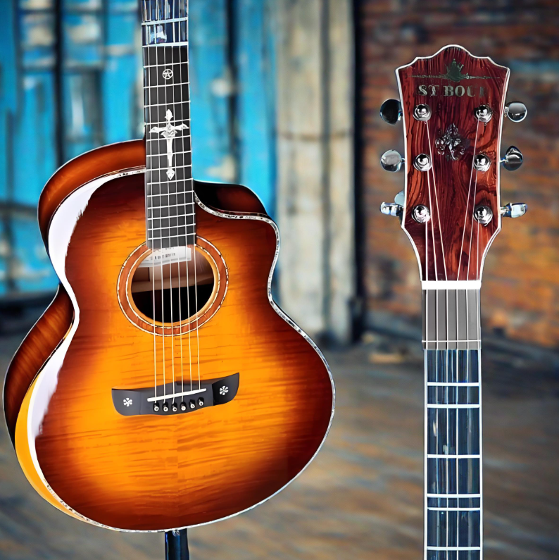 กีตาร์โปร่ง ST.BOUL รุ่น SCG-90C 6 สาย ตัวกีตาร์ทำจากไม้เมเปิลลายเสือ ฟิงเกอร์บอร์ดทำจากไม้โรสวูด ผิวไม้ขัดเงาธรรมชาติ