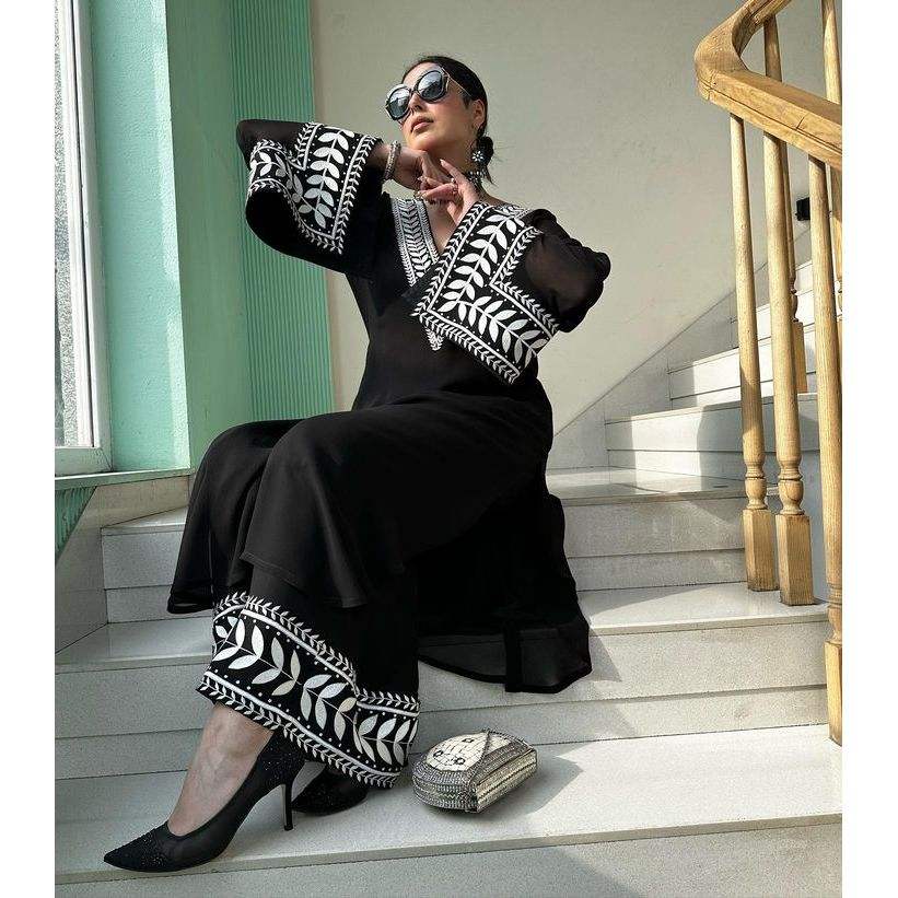 เสื้อเบลาส์สำหรับผู้หญิง ST นักออกแบบสีดำสำหรับใส่ไปปาร์ตี้ไซส์ M เสื้อตัวบนและ dupatta พร้อมแขนกระดิ่งแฟนซี