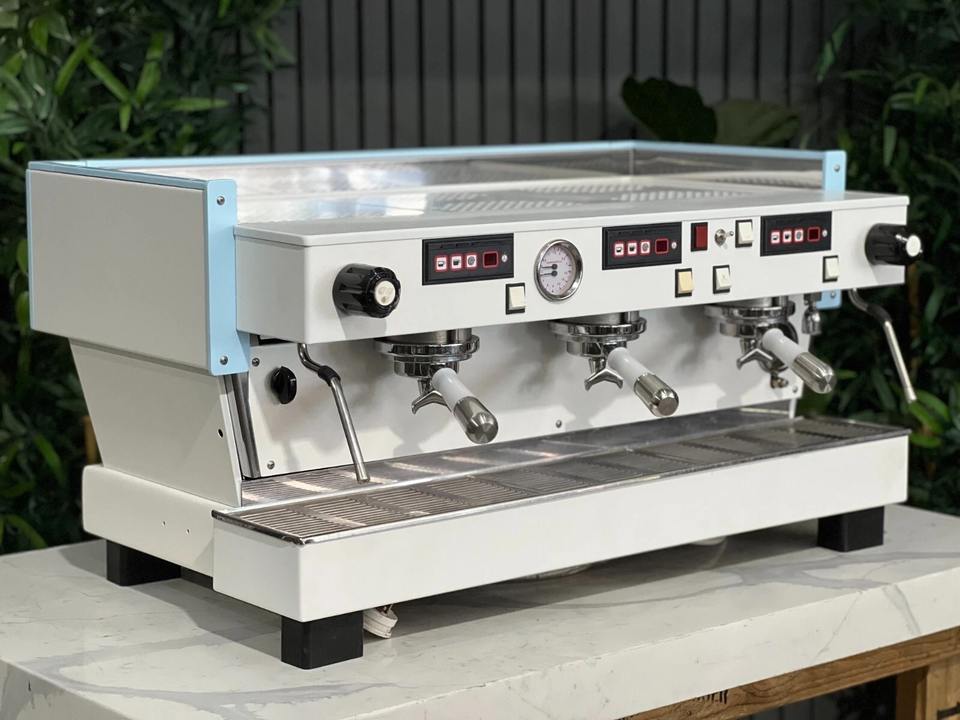 ST La marzocco LINEA เครื่องชงกาแฟเอสเพรสโซสีขาวและน้ำเงินแบบคลาสสิก3กลุ่ม