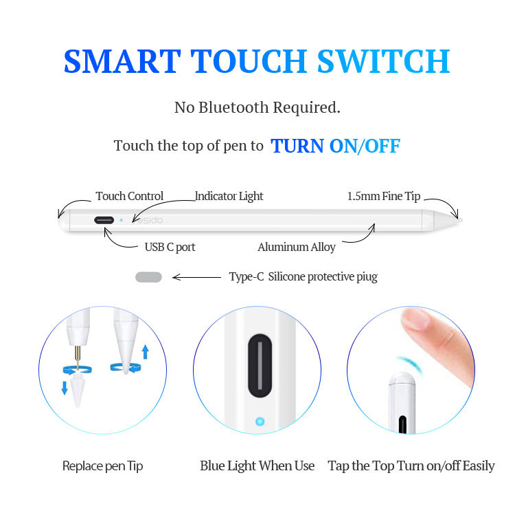 ST06 YESIDO 2024 โลหะดิจิตอลActive BTสมาร์ทหน้าจอสัมผัสแท็บเล็ตแล็ปท็อปSurface DrawingปากกาสไตลัสสําหรับIP