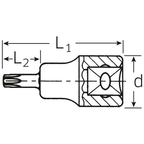 Stahlwille-03110055 1/2 ''ไขควงซ็อกเก็ตบิตสำหรับ Torx®สกรูโปรไฟล์ภายในที่มีรูในปลายบิต
