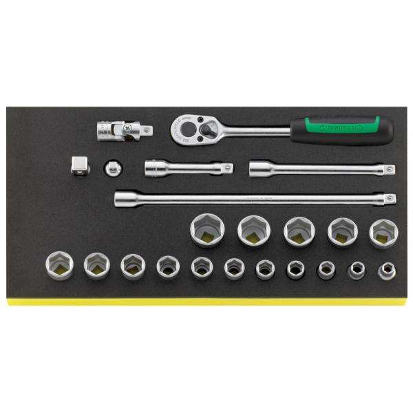Stahlwille-96830218 3/8 ''ชุดเฟืองพร้อมซ็อกเก็ตและอุปกรณ์เสริมใน TCS Inlay (23ชิ้น) -EAN 4018754180769ชุดเครื่องมืออื่นๆ