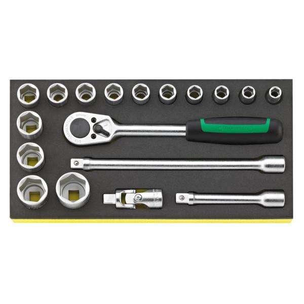 Stahlwille-96838781 1/2 ''ชุดเฟืองพร้อมซ็อกเก็ตและอุปกรณ์เสริมใน TCS Inlay (18ชิ้น) -EAN 4018754222162ชุดเครื่องมืออื่นๆ
