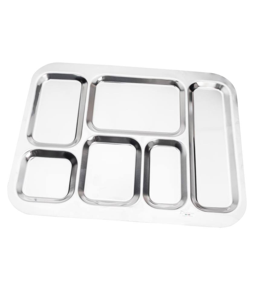 ถาดอาหารสแตนเลส6ช่องถาดโลหะสำหรับโรงอาหาร