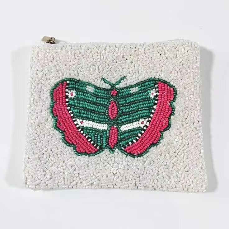 กระเป๋าใส่เหรียญปักลูกปัดลายดาวและพระจันทร์ งานแฮนด์เมด กระเป๋าสตางค์ใบเล็ก กระเป๋าใส่เหรียญแบบมีซิป