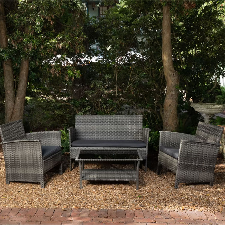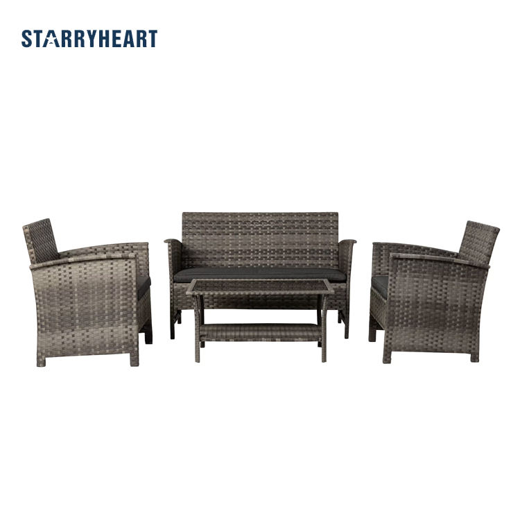 Starryheart ชุดเฟอร์นิเจอร์4ชิ้นสำหรับลานบ้าน, ชุดเฟอร์นิเจอร์หวาย PE ทุกสภาพอากาศสำหรับสระว่ายน้ำกลางแจ้ง