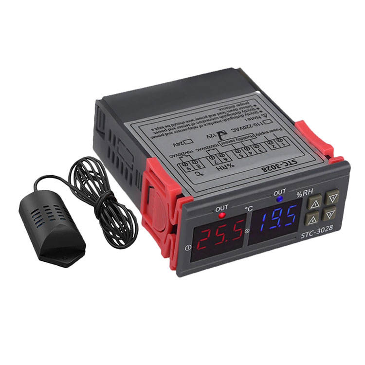 เครื่องควบคุมอุณหภูมิและความชื้นแบบดิจิตอล STC-3028 พร้อมเทอร์โมมิเตอร์และไฮโกรมิเตอร์ ควบคุมอุณหภูมิและความชื้น รุ่น STC 3028 รองรับไฟ AC 110V 220V และ DC 12V 24V