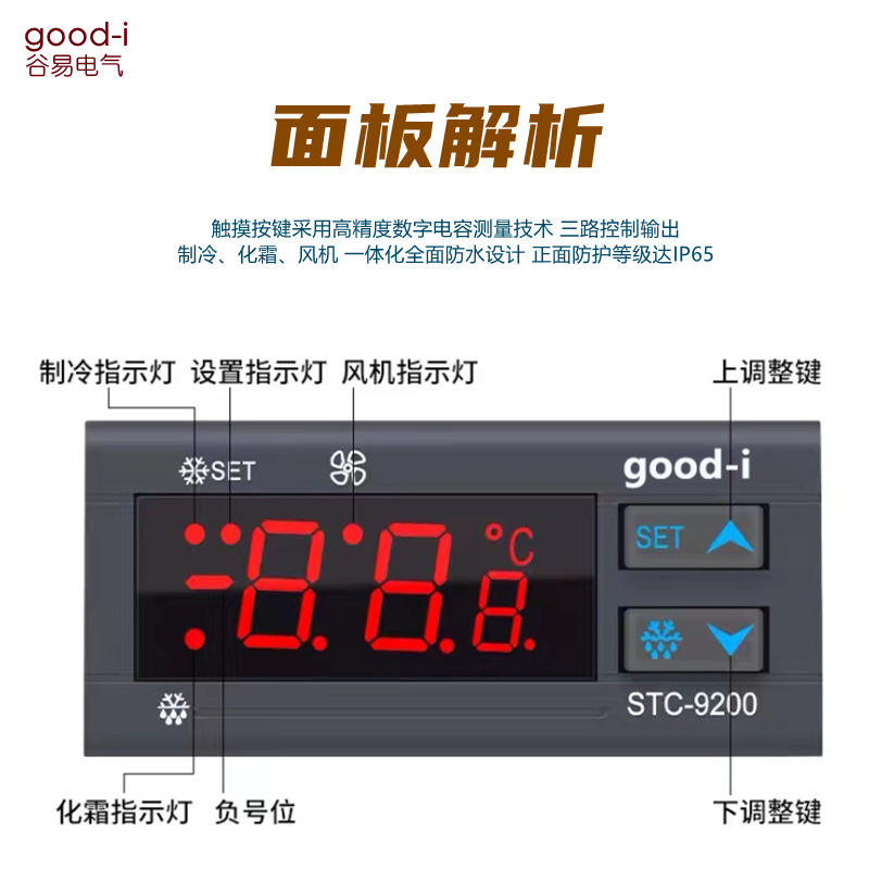 ตัวควบคุมอุณหภูมิห้องเย็นแบบดิจิตอล STC-9200 พร้อมพัดลมระบายความร้อนและสวิตช์ละลายน้ำแข็งสำหรับห้องเย็น