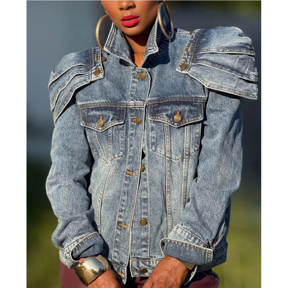 เสื้อแจ็กเก็ตยีนส์ผู้หญิงคุณภาพสูง 100%