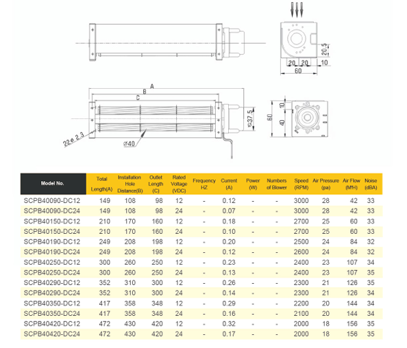 STK SCLB40 Series 40mm DC Cross Flow Fan 24V