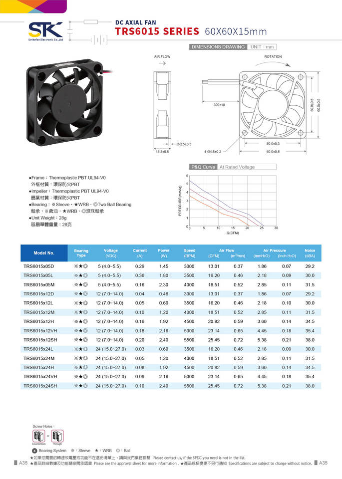 Impeller Material:Thermoplastic PBT
