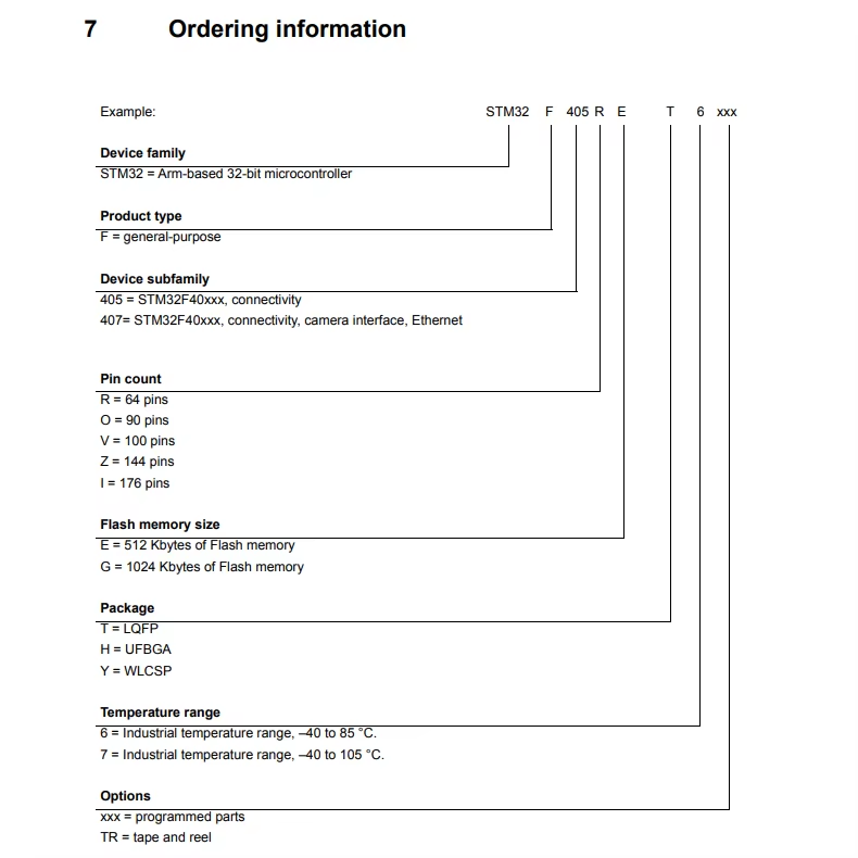 STM32F407VET6TR, STM32F407VGT6TR, STM32F407ZGT6TR, STM32F407ZET6TR, STM32F407IGH6TR, STM32F407IGT6TR, STM32F405RGT6TR, STM32F405VGT6TR, STM32F405ZGT6TR