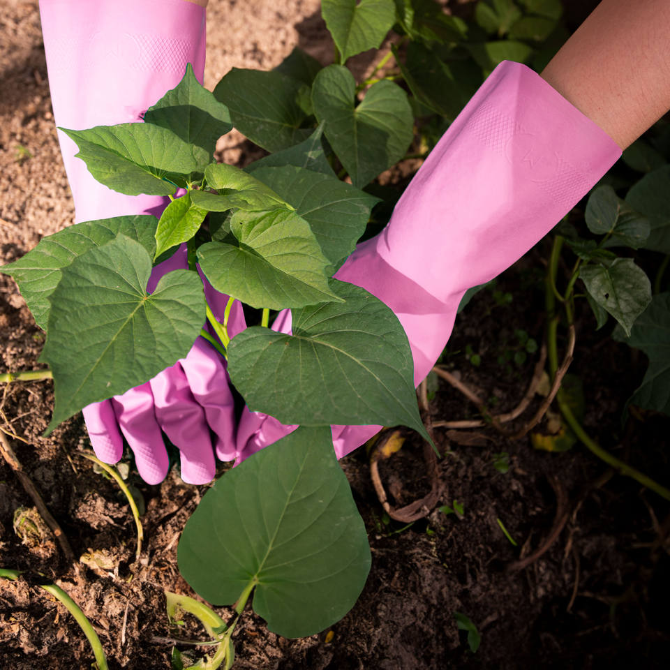 ถุงมือยางลาเท็กซ์ผ้าฝ้ายสีชมพูกันน้ำกลางแจ้งสำหรับฤดูร้อนถุงมือล้างจานหนาปานกลางขนาด17ล้านสีสำหรับใช้ในครัวเรือนมีจำนวนจำกัด