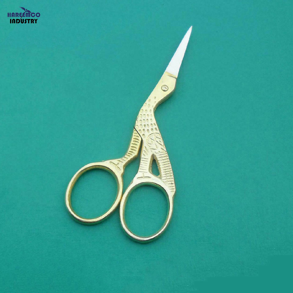 กรรไกร STORK สีทอง ปลายแหลม ใบมีดตรงคมกริบ ผลิตจากสแตนเลสอย่างดี จับถนัดมือ ทนทาน