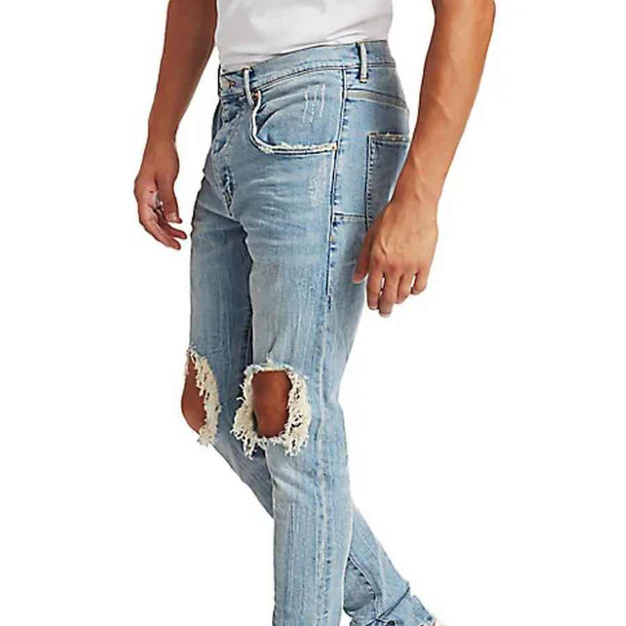 กางเกงยีนส์ทรงตรงผู้ชาย ทรงสลิมฟิต สไตล์ลำลอง เนื้อผ้าเบา ยืดได้ มีกระดุม ปิดเอวกลาง ผ้าฝ้าย ระบายอากาศดี โดย MELSFIT SPORTS