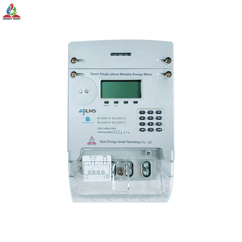 Zhongyi STS เครื่องวัดพลังงานอัจฉริยะแบบเติมเงินเฟสเดียว DLMS/DL/T645-2007 Modbus-RTU โปรโตคอล4G /wifi/ RS485แสดงผล LCD